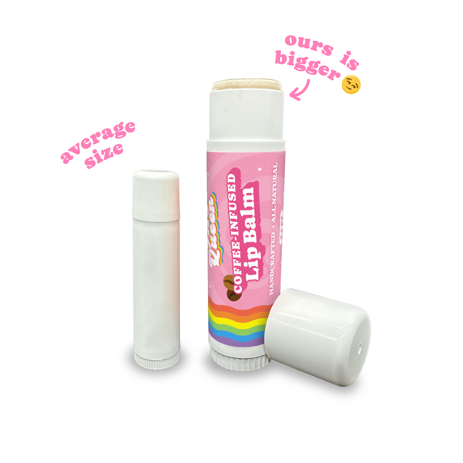 Sometimes you just need a big stick! Our coffee-infused lip balm is packing in this .5 oz tube. Crafted by hand and all natural—just the way you like it. So go ahead, give it a twist, and...well...you know what to do, honey.